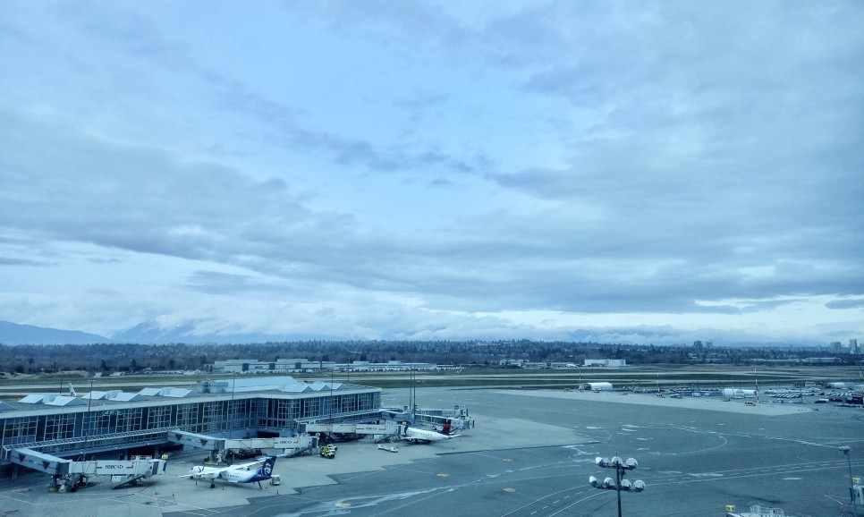 호텔에서 3박동안 밖을 못 나간다니 답답할 거라고 생각했지만 문을 열고 들어오자마자 한벽면 전체가 창문 밖으로 공항 전경이 펼쳐 저 있었고 넓게 보이는 하늘과 저기 멀리 캐나다의 산이 보여 시원했다. 3박 머무를 동안 내내 비가 오거나 흐렸던 날씨였지만 하늘이 많이 보여서인지 가슴이 탁 트이고 한 번도 답답하다고 느껴지지 않았다.